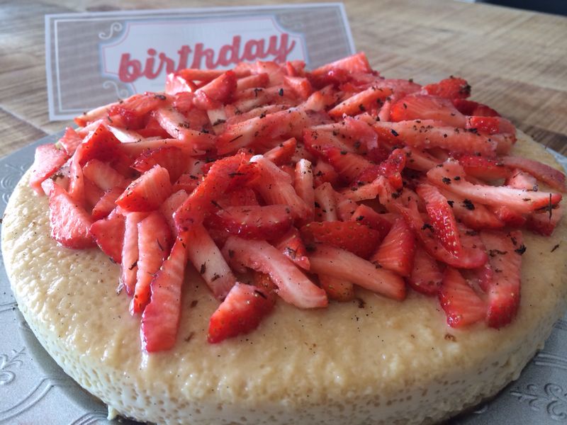 Para la decoración, necesitarás algo de fruta, nuestra abuela solía decorarlo con fresones y le daba un toque de verde con kiwi. Nosotras optamos por fresones también y rallamos una vaina vainilla que le dió un aroma muy especial!